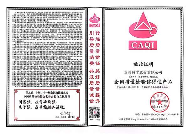 • 全國質量檢驗信得過產品