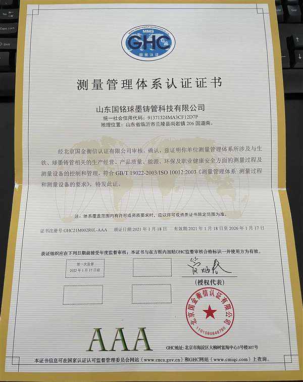 • 測量管理體系認證證書
