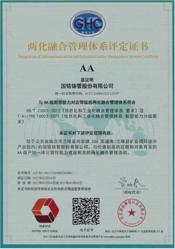 • 兩化融合管理體系證書
